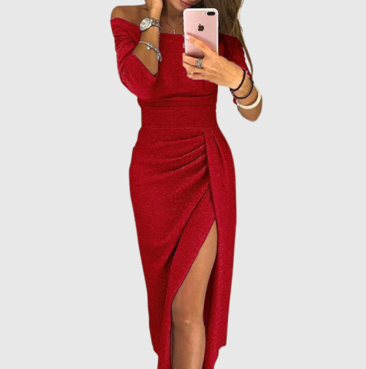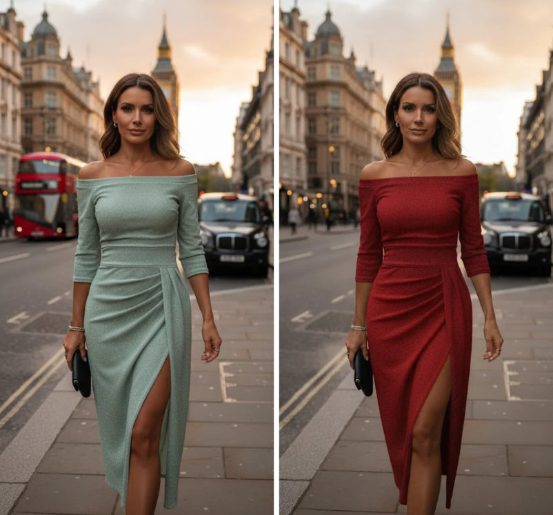 Il nostro abito "Venere" longuette aderente è stato creato per la donna che non ha paura di brillare. Con la sua silhouette che accarezza le curve e il tessuto scintillante, cattura la luce e l'attenzione in ogni stanza. Il design "off-shoulder" (spalle scoperte) aggiunge un tocco di raffinata sensualità, mettendo in mostra delicatamente la clavicola e le spalle. È il capo perfetto per sentirsi potenti e divine.