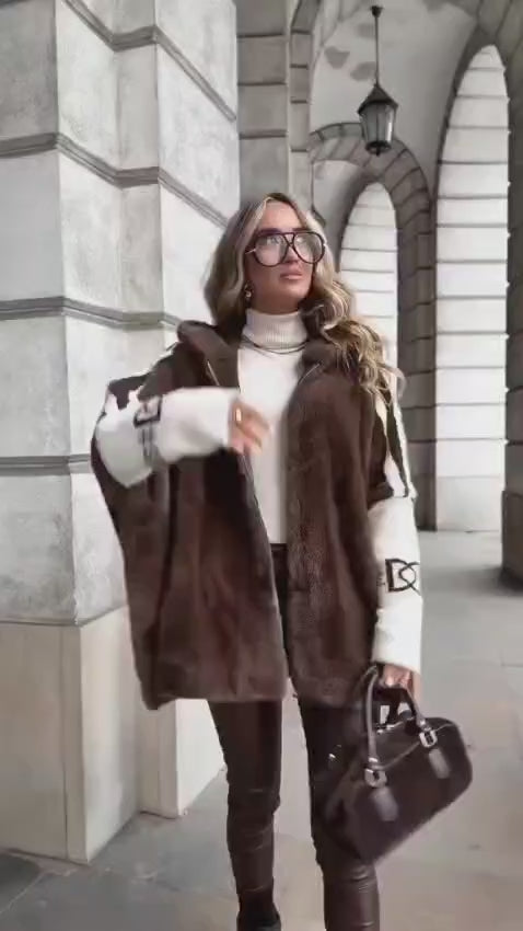 Scopri la fusione perfetta tra l'opulenza della pelliccia sintetica e l'energia dello stile sportswear. Questa giacca bomber oversize color cioccolato redifinisce il concetto di lusso casual, offrendo un capo audace che non passa inosservato, ideale per chi desidera distinguersi con personalità e un pizzico di irriverenza urbana.